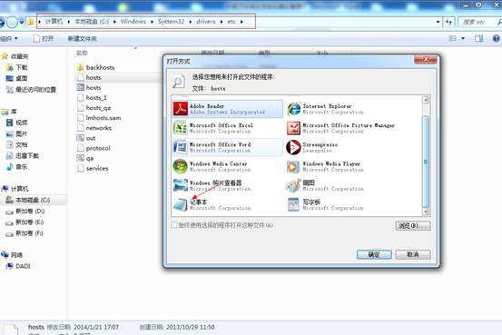 2. 打開 C 盤文件夾地址 C:\Windows\System32\drivers\etc 中的 hosts 文件,用記事本打開。復(fù)制粘貼 211.152.43.12 www.haiheherb.com