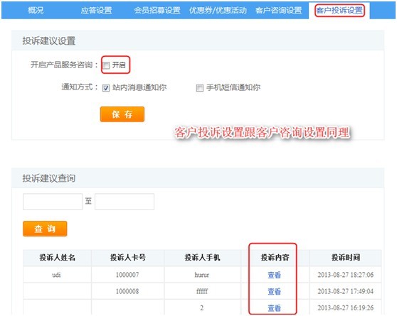 收集到客戶的投訴建議,通過系統短信,或者公眾微信平臺為客戶處理投訴建議。