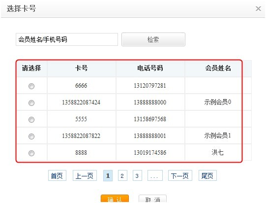 勾選 “禁止收銀臺、充值等功能通過空檢索字來獲得全部會員卡列表”之前: