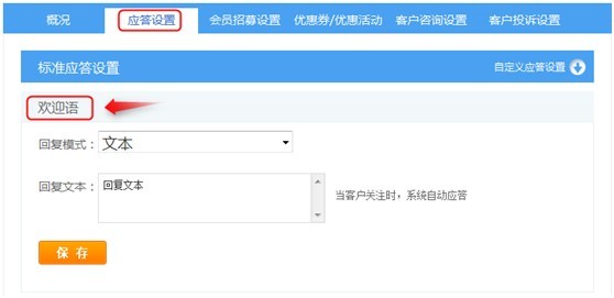 歡迎語設置,文本模式,建議設置150個字以內。