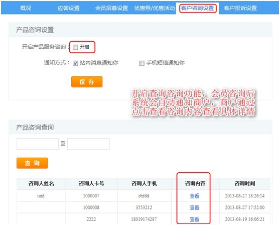 收集到客戶的咨詢信息后,通過系統短信,或者公眾微信平臺回答商戶問題。