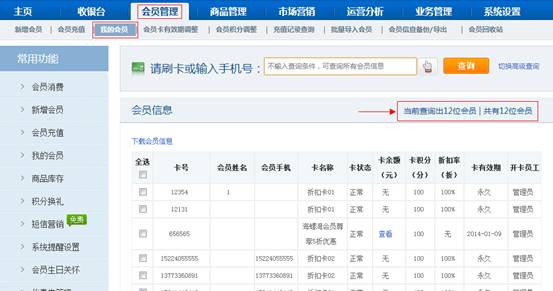 進入【會員管理】 - 【我的會員】功能界面查看會員總數,方便商戶查詢了解會員數量。當前查詢會員數可配合每頁顯示條數查看使用。