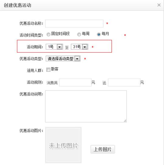 3. 優化優惠活動設置中的【每月】默認日期