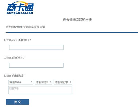 2 ) 在申請頁面,填寫商戶登錄名、聯系手機和詳細的地址。填寫正確后,我們將和您聯系,確認信息,并進行功能開通。