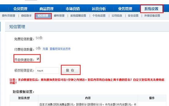 2 ) 如需取消此功能,去掉“【商卡通】”的簽名,恢復為原有的情況,可在“系統設置”的“短信管理”中進行關閉。