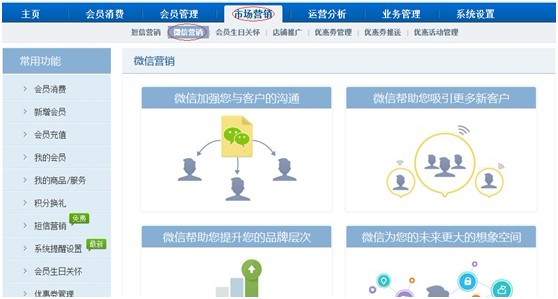 本次上線新增了“微信營銷”功能。(已有微信公眾號的商戶無需申請,直接聯(lián) 系商卡通在線客服進行綁定)