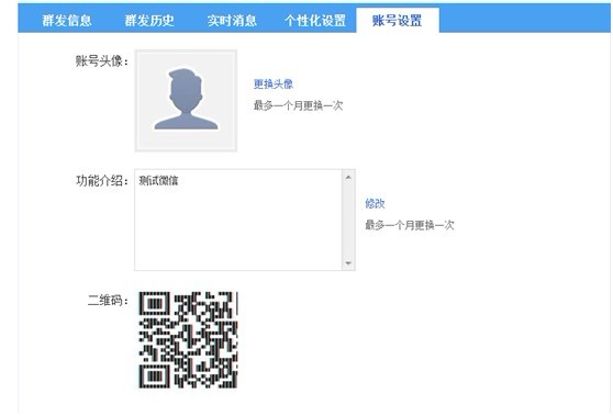 5. 【帳號設置】進行更換頭像操作,功能介紹信息是會員搜到公共賬號時,點開頭像會顯示公共微信賬號功能介紹信息。
