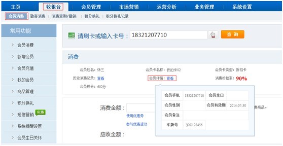 進入【收銀臺】-【會員消費】功能: