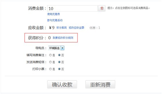 a. 管理員給操作員【業(yè)務管理】-【積分規(guī)則設置】權限,操作員在操作會員消費功能時,點擊“我要修改積分規(guī)則”即可修改積分規(guī)則。