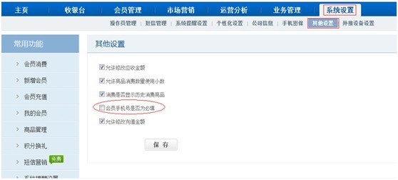 a. 進入【系統(tǒng)設置】-【其他設置】選項取消勾選“會員手機號是否為必填”。