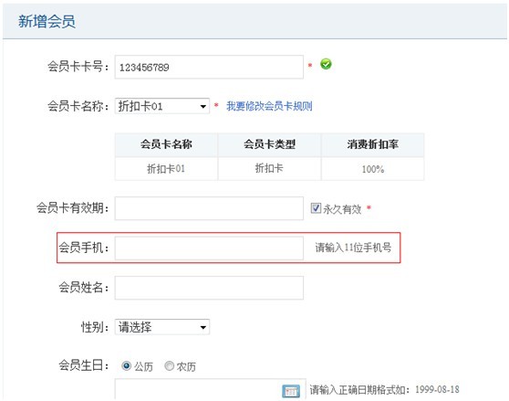 b. 取消勾選“會員手機號是否為必填”后新增會員時可以不填寫手機號。