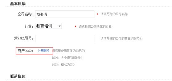 第二步,上傳logo圖片,上傳logo點擊保存后登陸界面會添加商戶logo:
