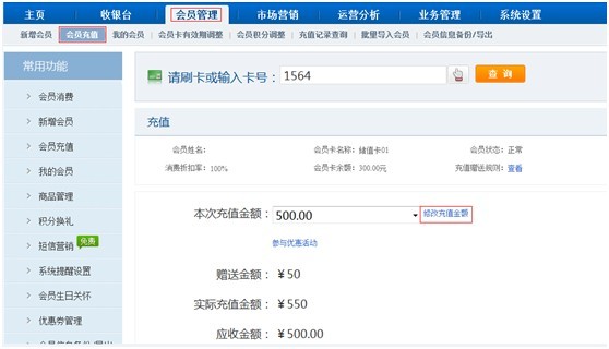 a. 進入【會員管理】-【會員充值】功能點擊“修改充值金額”: