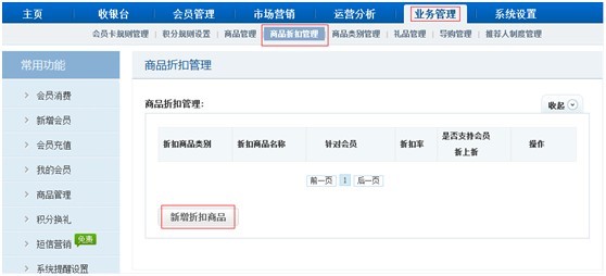 a. 進入【業(yè)務管理】-【商品折扣管理】點擊新增折扣商品。