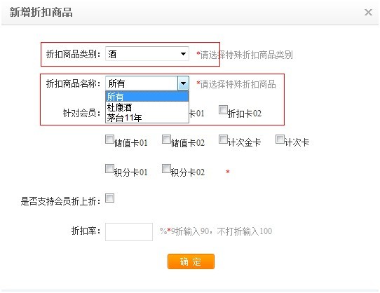 2. 【業(yè)務管理】-增加【商品折扣管理】功能,設置不同商品對應不同折扣;