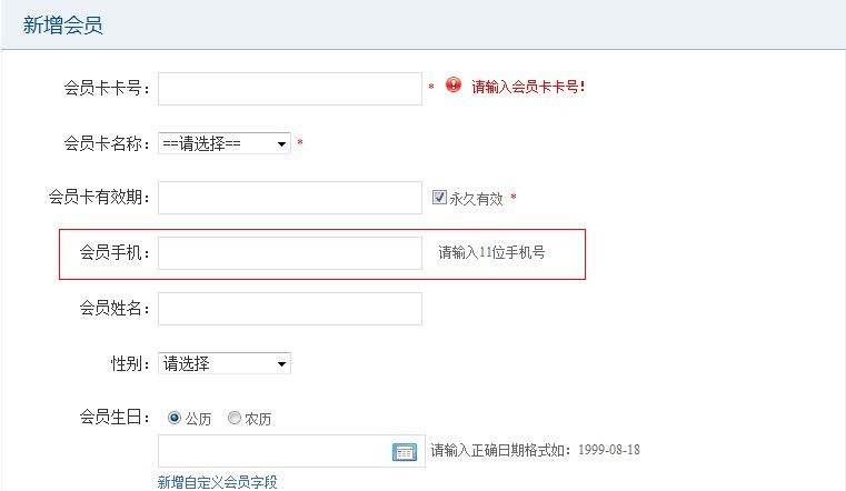 【會員管理】-【新增會員】時,不輸入手機號也可以進行新增會員操作。