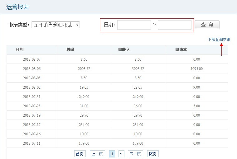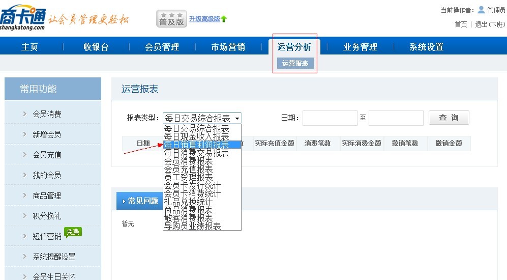 商卡通會員管理系統(tǒng)中【每日銷售利潤報表】的統(tǒng)計內(nèi)容。進入【運營分析】-【運營報表】-每日銷售利潤報表。