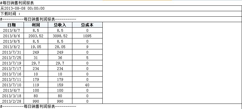 每日銷售利潤報表的統(tǒng)計內(nèi)容: