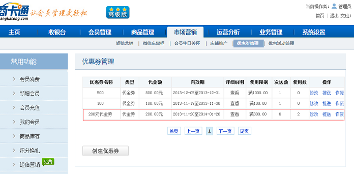 進入【市場營銷】 - 【優惠券管理】功能,創建一個需要實施的優惠券。
