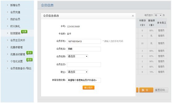b. 會員管理-我的會員-會員修改,通過電話記錄下這個會員的需要信息并記錄下來。