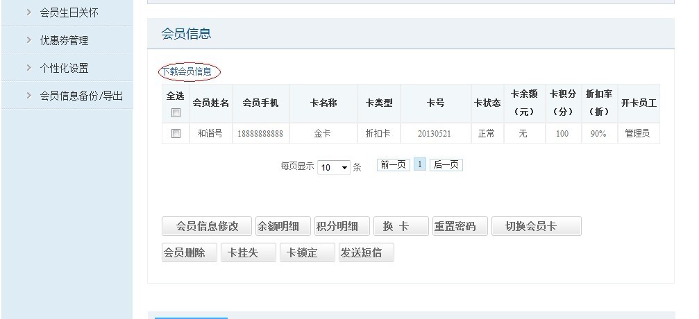 4. “查詢“成功,顯示出”和諧號“,找到該會員的信息。接下來消費管理等操作就更加方便了。