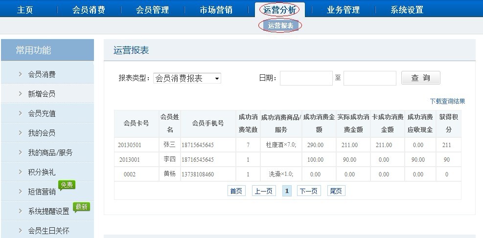 商卡通會員管理軟件【運營分析】-【運營報表】-【會員消費報表】,更清晰的了解會員的消費能力跟消費商品習慣,充分了解會員的需求。