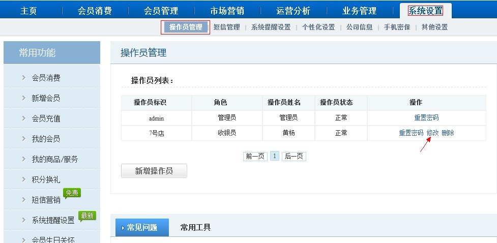 1. 找到收銀員點擊“修改”