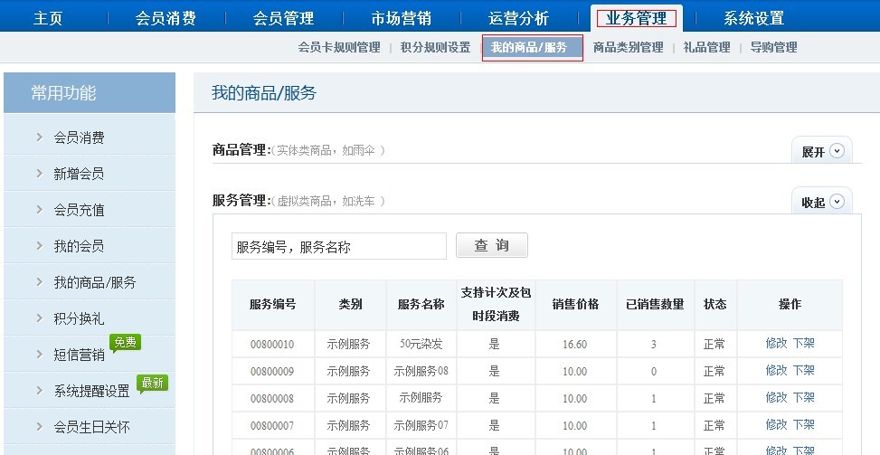 【業(yè)務(wù)管理】-【我的商品/服務(wù)】,【我的服務(wù)】的使用范圍以及如何上架我的服務(wù)。在【業(yè)務(wù)管理】-【我的商品/服務(wù)】功能點(diǎn)擊“上架新服務(wù)”完成上架服務(wù)操作。