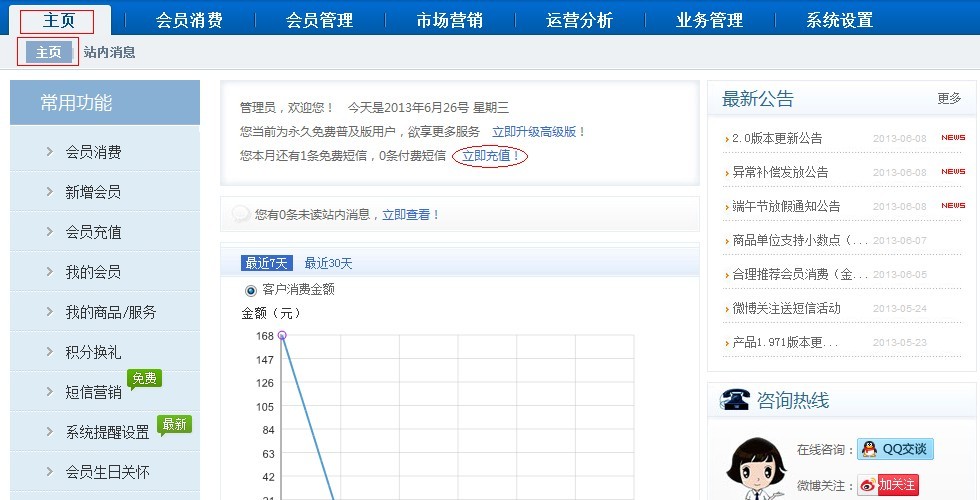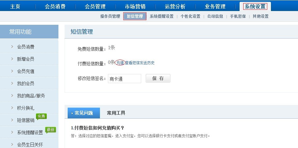 付款短信不像免費短信,商卡通免費短信會在每月1號贈送,有1個月的使用期限。而付費短信條數(shù)無時間限制,付費短信充值也是即充即用。 付費短信充值方法: