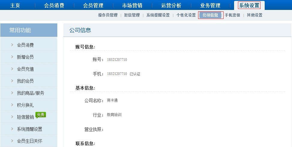 如何修改優惠劵推送的咨詢電話?通過【系統設置】-【公司信息】-【商戶聯系電話】修改,達到修改優惠劵推送詳情咨詢電話的目的!